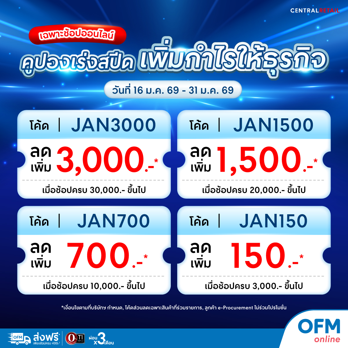 มุ่งมั่นให้บริการที่เป็นเลิศ ตอบโจทย์ทุกธุรกิจ ภายใต้คำมั่นที่ว่า "สร้างธุรกิจไว ให้ทุกธุรกิจวิน" เราพร้อมเป็นทางลัดให้คนทำธุรกิจก้าวไวกว่าเดิม โดยส่งตรงสินค้าและบริการที่ครบครันมากกว่า 60,000 รายการ อุปกรณ์สำนักงาน ไอที เฟอร์นิเจอร์ และสินค้าเพื่อธุรกิจ พร้อมจัดส่งให้ฟรี ถึงที่เมื่อช้อปครบ 499.-* ตามเงื่อนไขที่บริษัทกำหนด