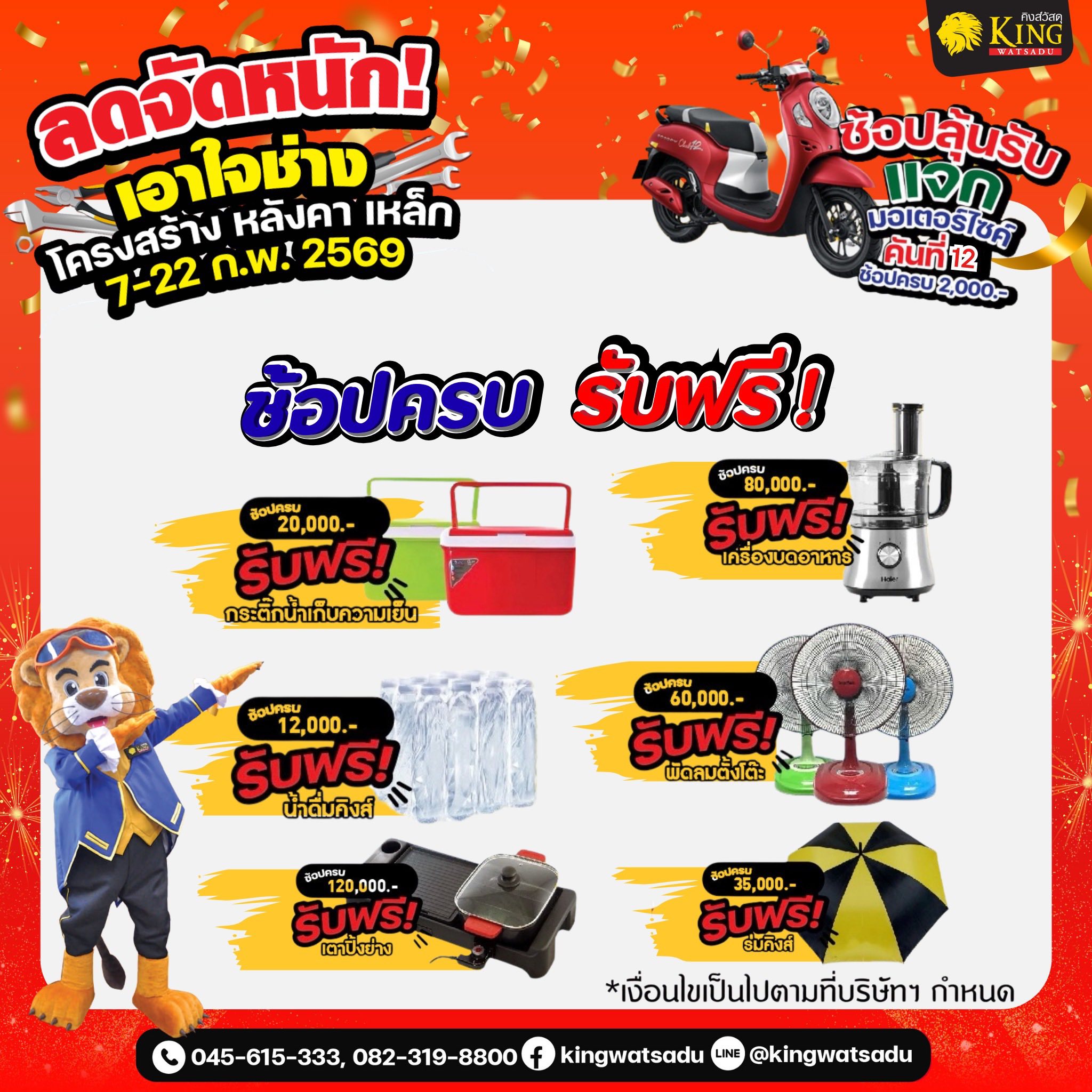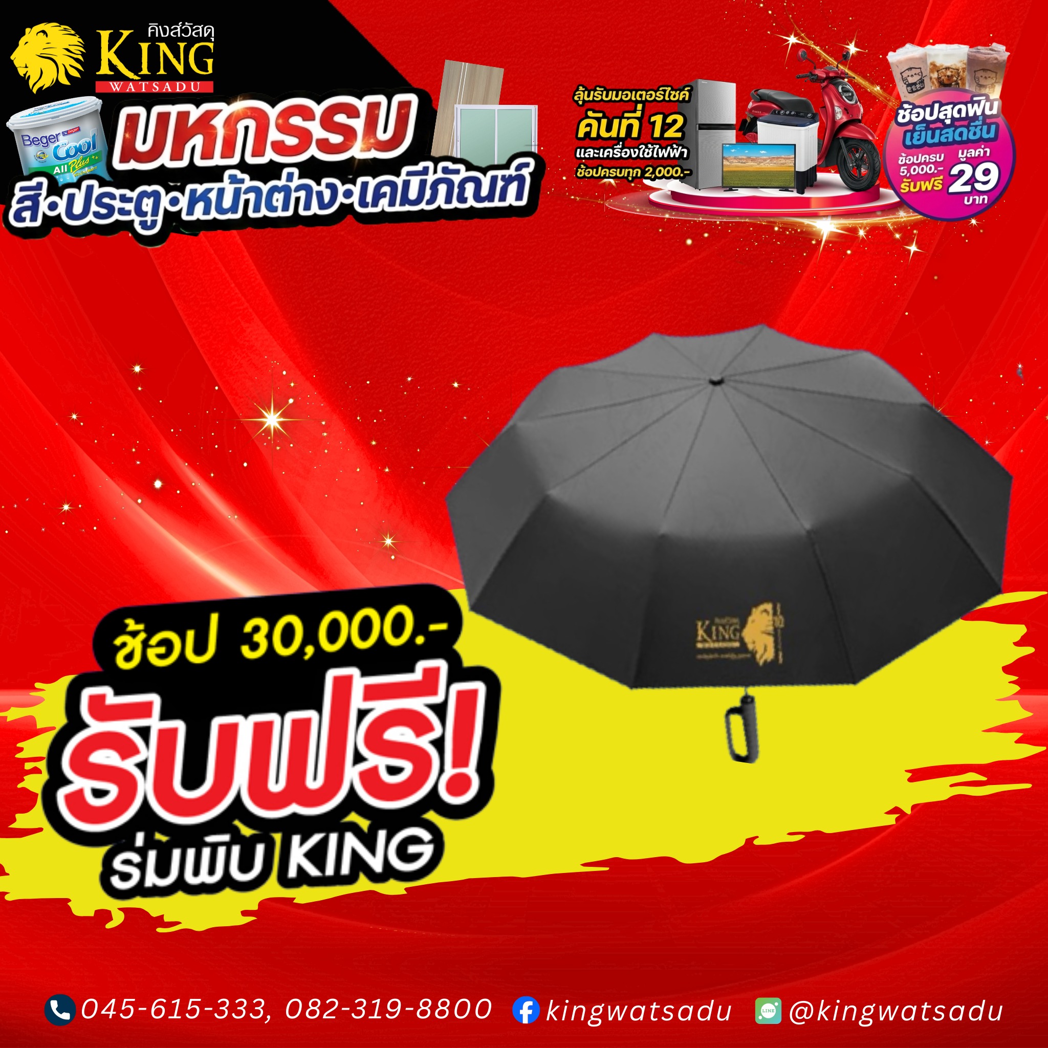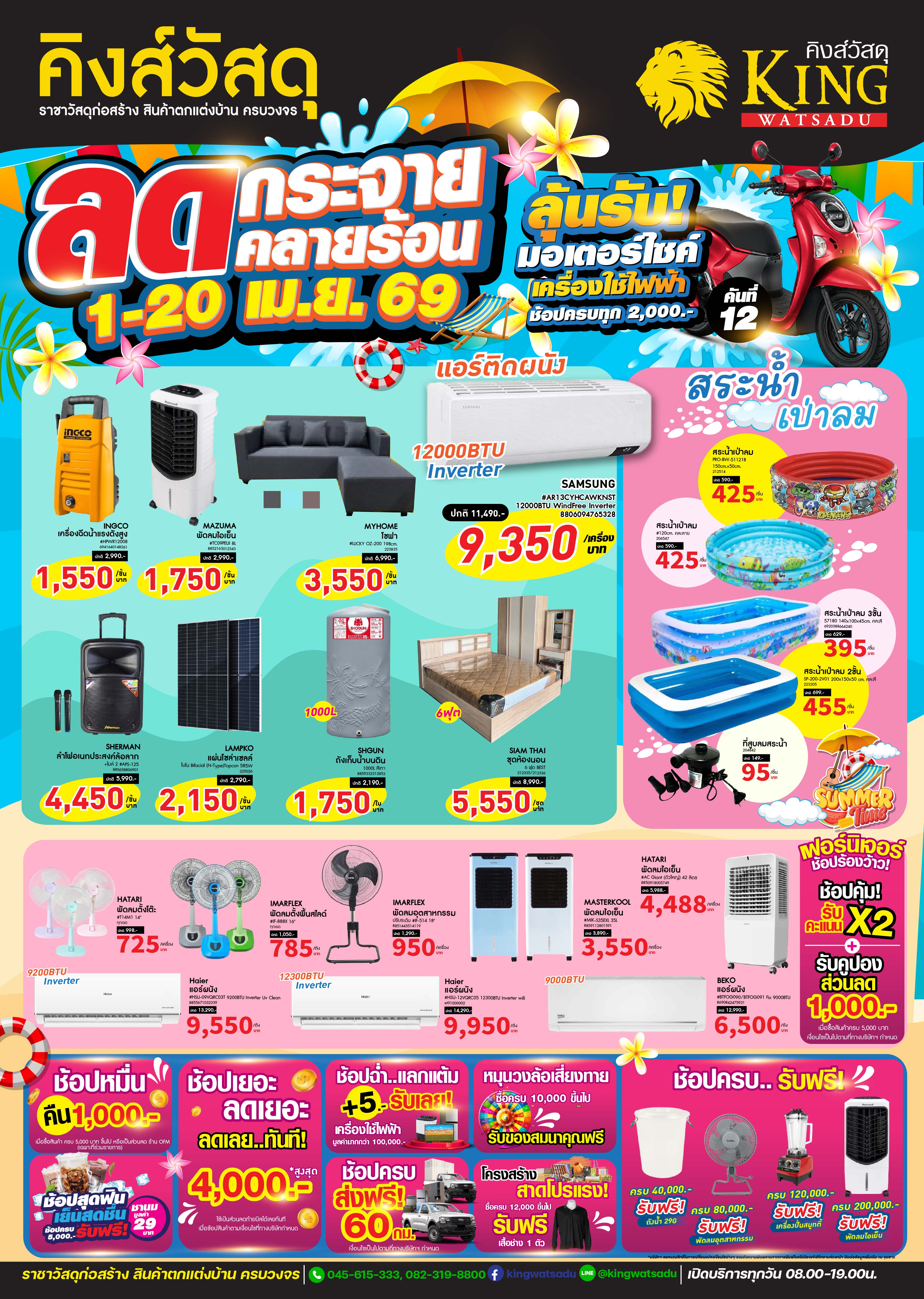 พบกับสินค้าเฟอร์นิเจอร์ ห้องน้ำ ห้องครัว และสินค้าอื่นๆ อีกมากมาย ช้อปลุ้นรับ ฃ้อปรับฟรี ช้อปแลกซื้อ ห้ามพลาด ที่คิงส์วัสดุ เท่านั้น