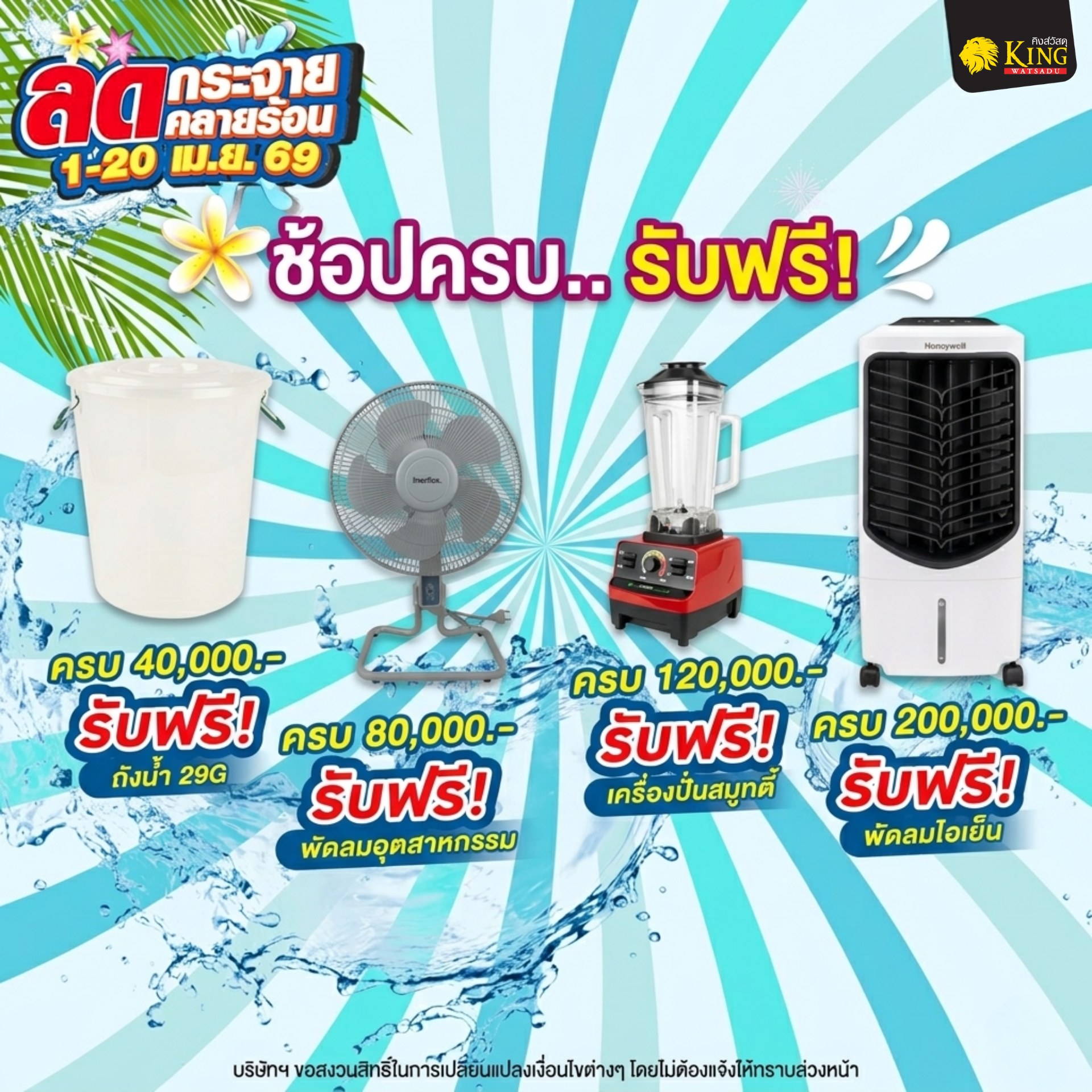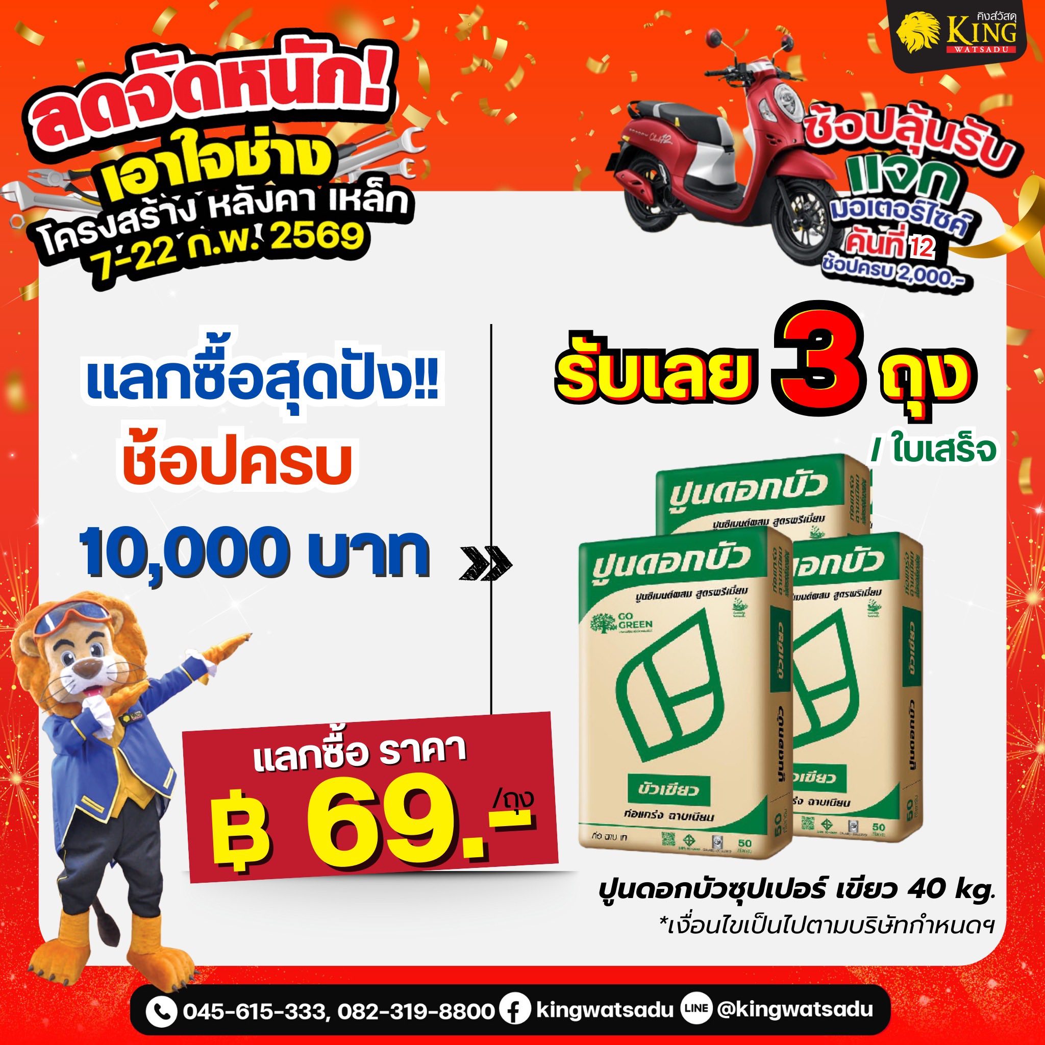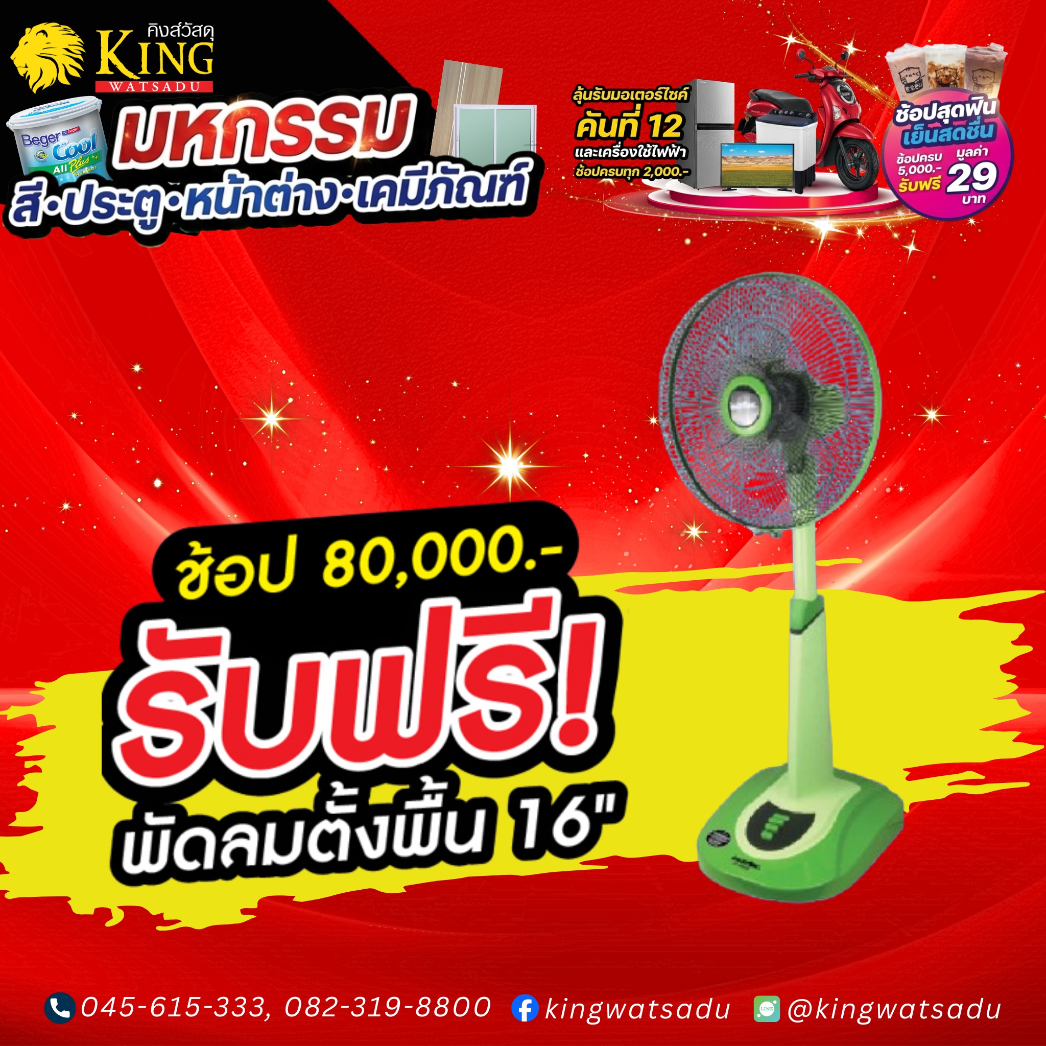 พบกับสินค้าเฟอร์นิเจอร์ ห้องน้ำ ห้องครัว และสินค้าอื่นๆ อีกมากมาย ช้อปลุ้นรับ ฃ้อปรับฟรี ช้อปแลกซื้อ ห้ามพลาด ที่คิงส์วัสดุ เท่านั้น