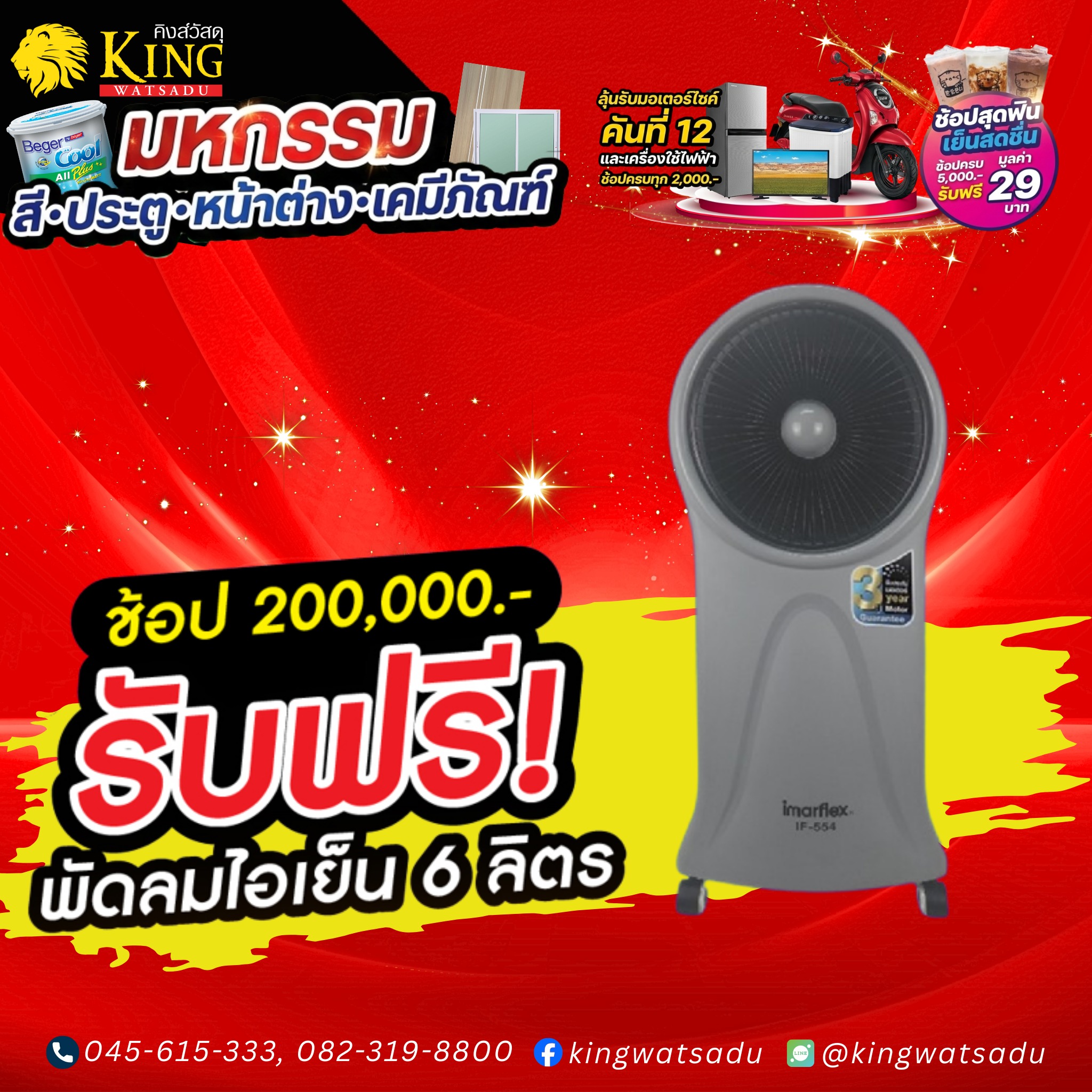 เมื่อช้อปครบ 200,000 รับฟรีพัดลมไอเย็นขนาด 6 ลิตร 1 เครื่อง