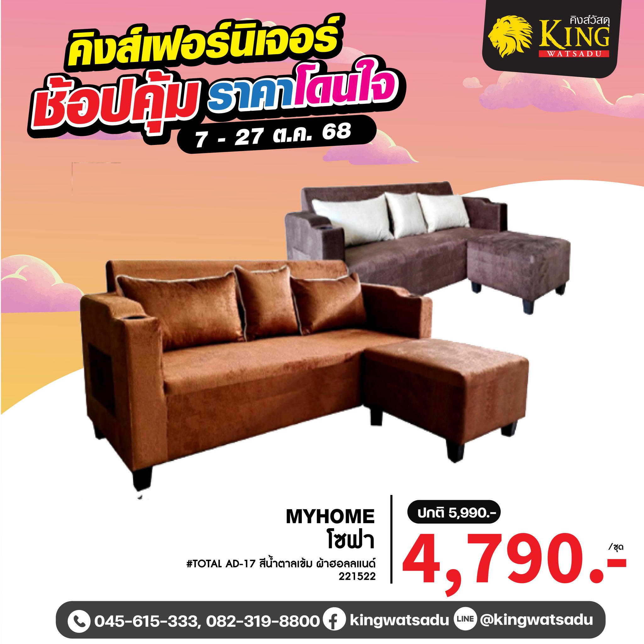 #MYHOME โซฟา #TOTAL AD-17 สีน้ำตาลเข้ม ผ้าฮอลลแนด์