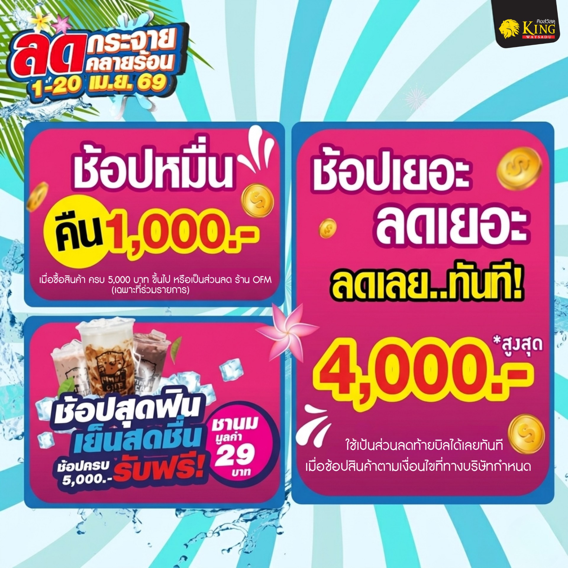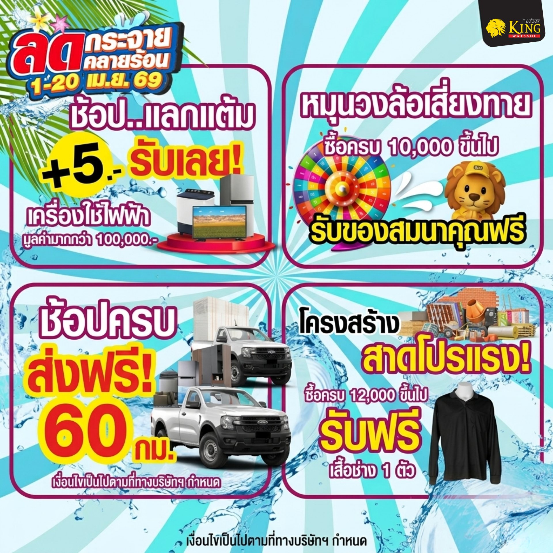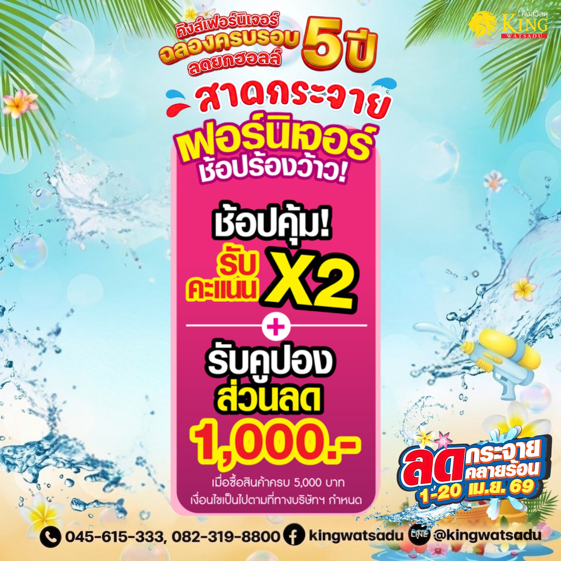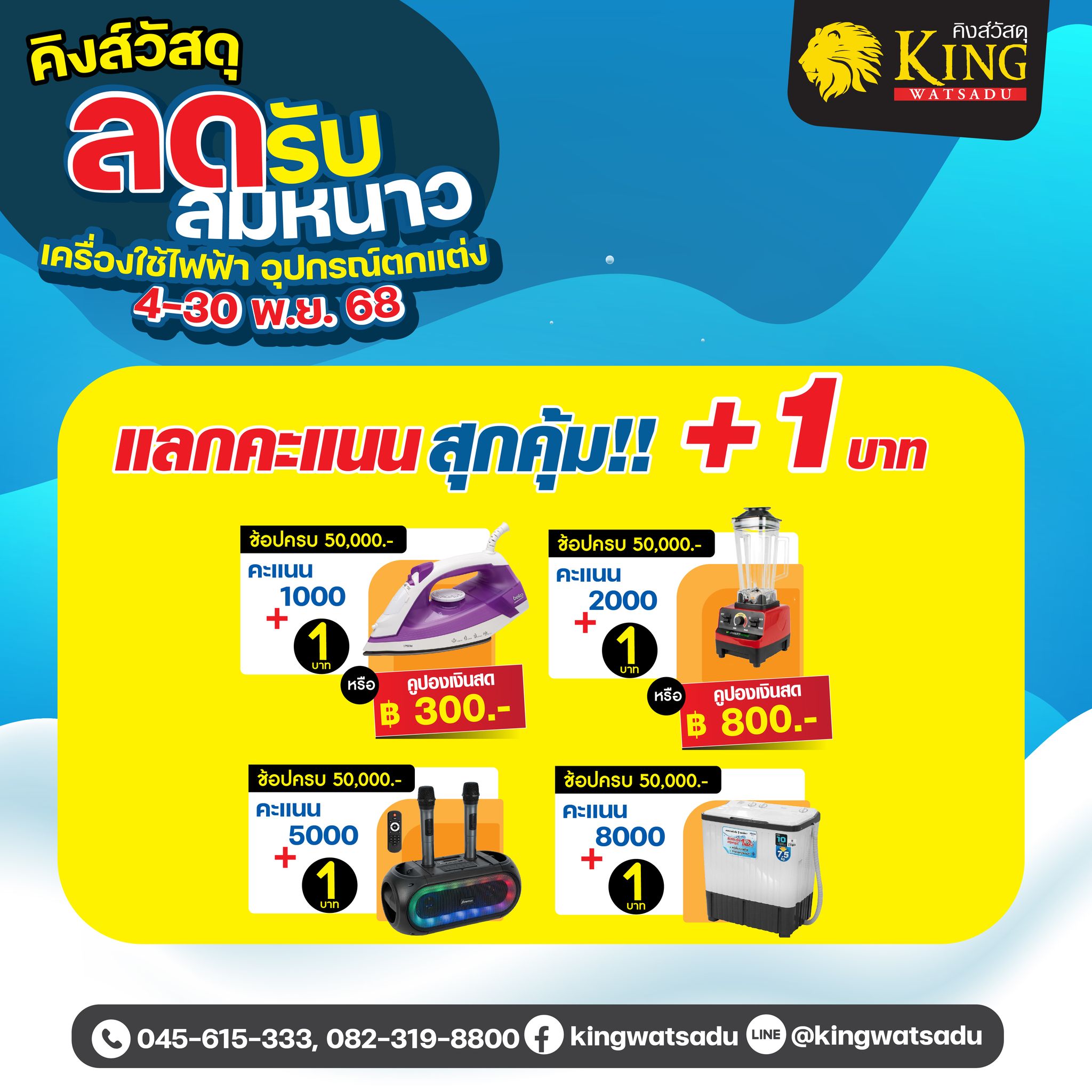 พบกับสินค้าเฟอร์นิเจอร์ ห้องน้ำ ห้องครัว และสินค้าอื่นๆ อีกมากมาย ช้อปลุ้นรับ ฃ้อปรับฟรี ช้อปแลกซื้อ ห้ามพลาด ที่คิงส์วัสดุ เท่านั้น